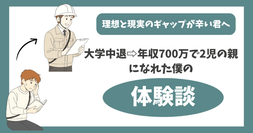 大学中退後、アパレル(年収300万円)→営業(年収450万円)→施工管理技士(年収600万円)→施工管理技士(年収700万円)と収入を上げて来る中で実践したことや学んだことを発信します。